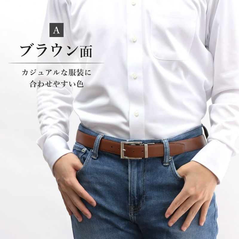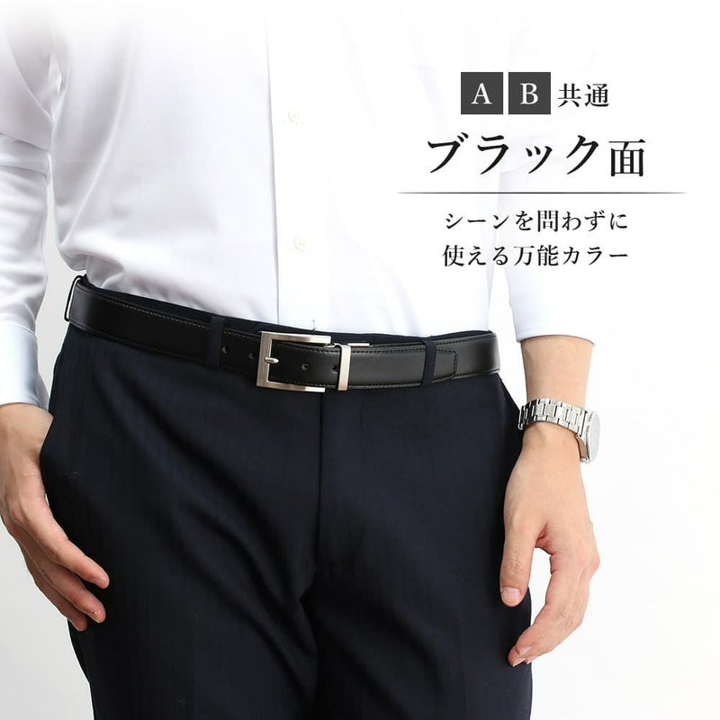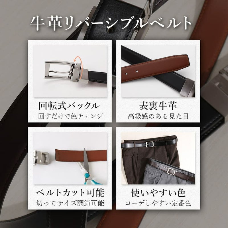 本革リバーシブルベルト 1本で2色使える!回転式バックルで簡単色チェンジ