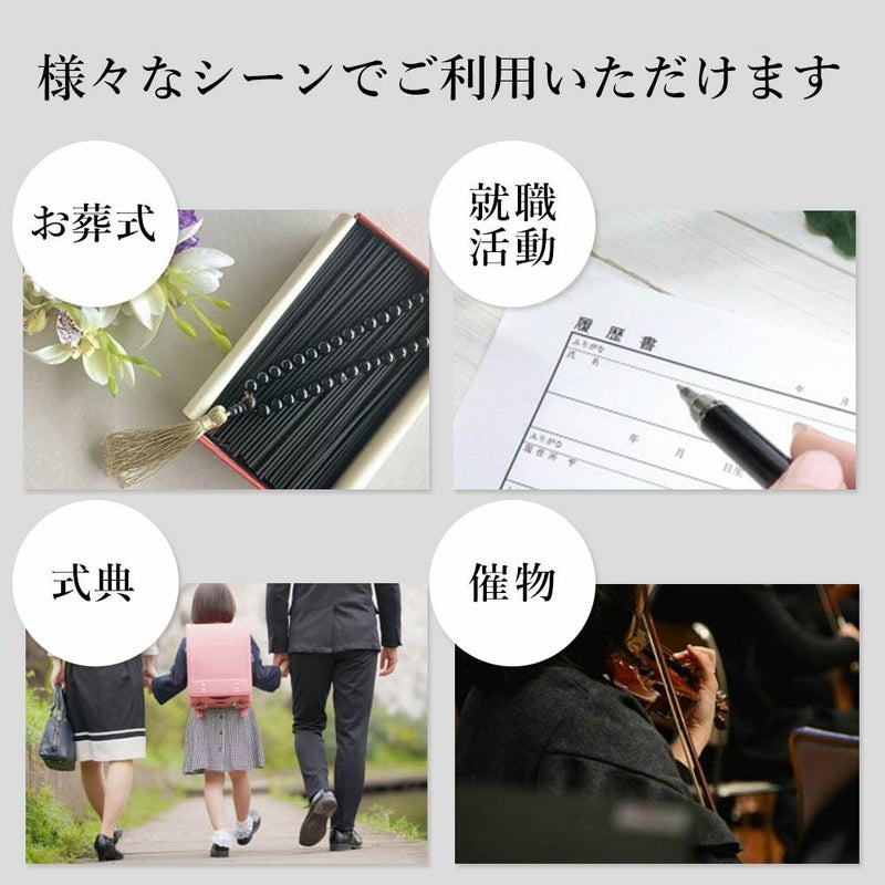 お葬式や就職活動などフォーマルな場。式典などのお祝いごと、演奏会や舞台などの催物など。