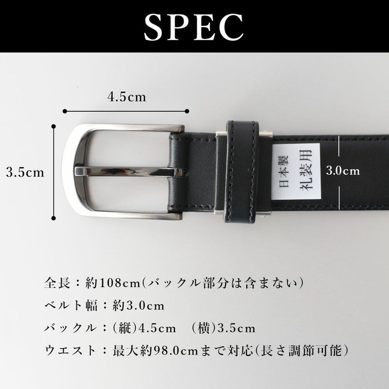 全長:約108cm(バックル部分は含まない)/ベルト幅:約3.0cm/バックル:約4.5cm×3.5cm/ウエスト:最大約98.0cmまで対応(長さ調節可)/