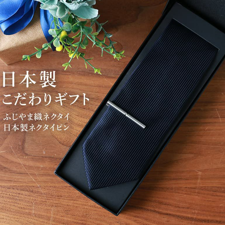日本製シルクネクタイ×日本製タイピン 【ふじやま織ネクタイ】 ギフトに最適 刻印付き ラッピング付き 21種類から自由に選べる!