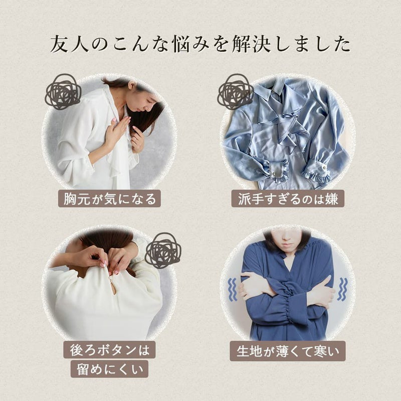 きっかけは友人との会話でした。服装に厳しい人がいるからデザイン性のあるブラウスは着れない。男性が多い職場だから胸元の開き具合がきになる。毎日時間がないのにアイロンなんてしてられない。