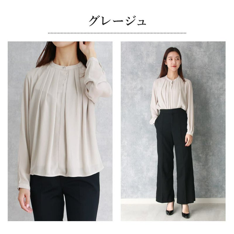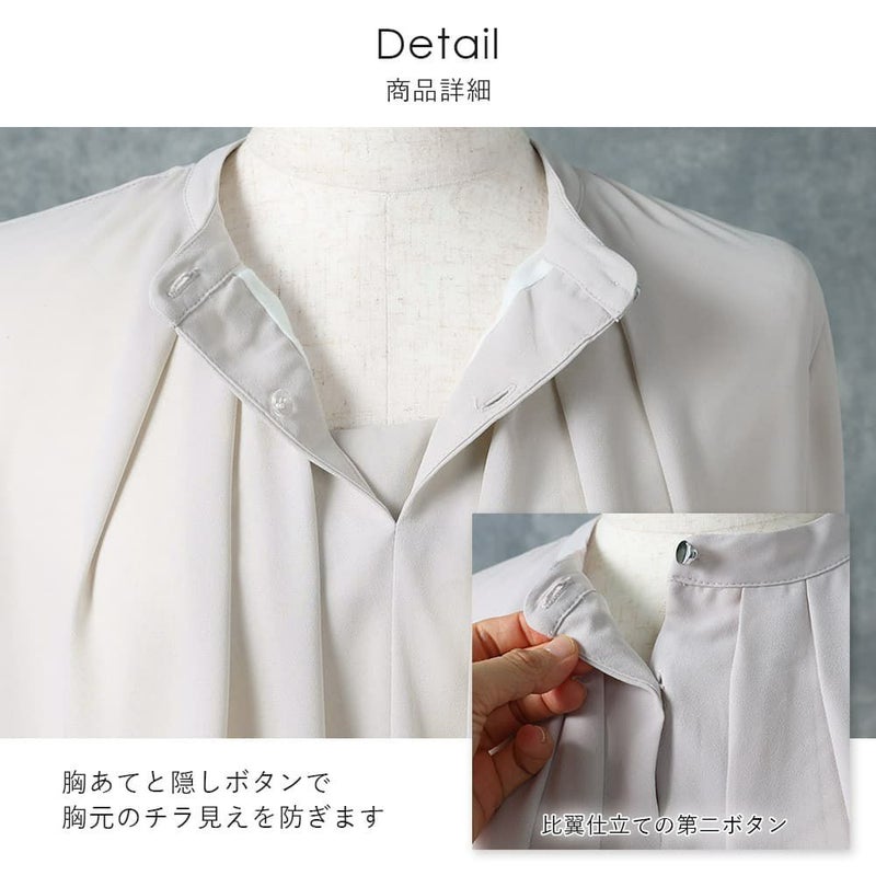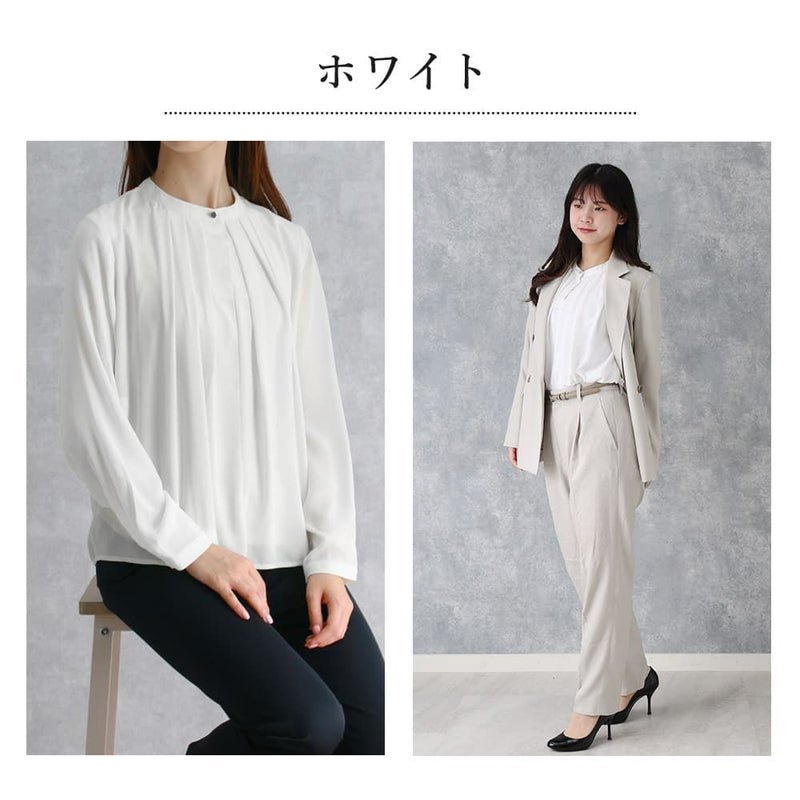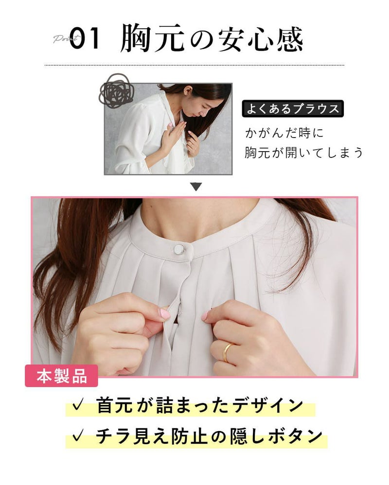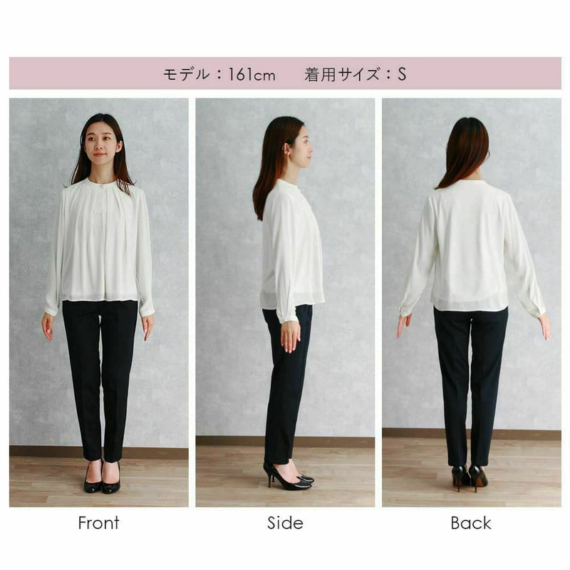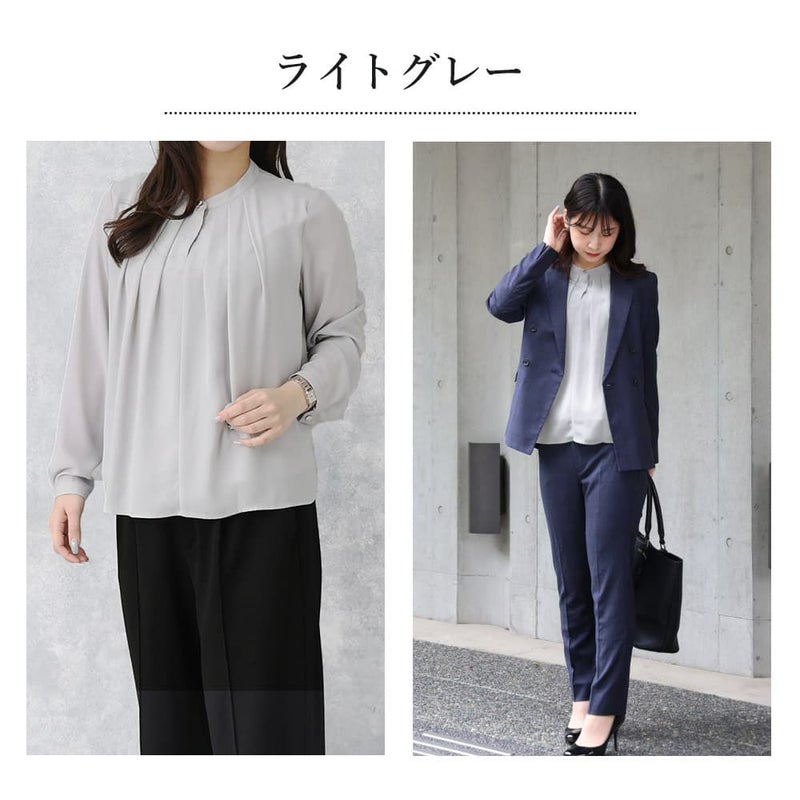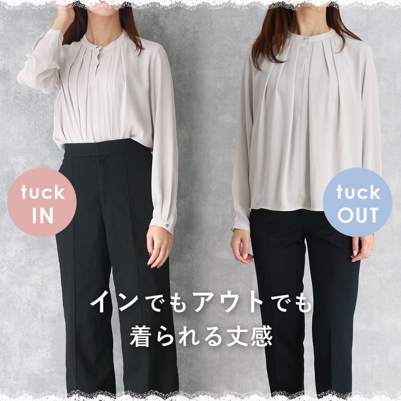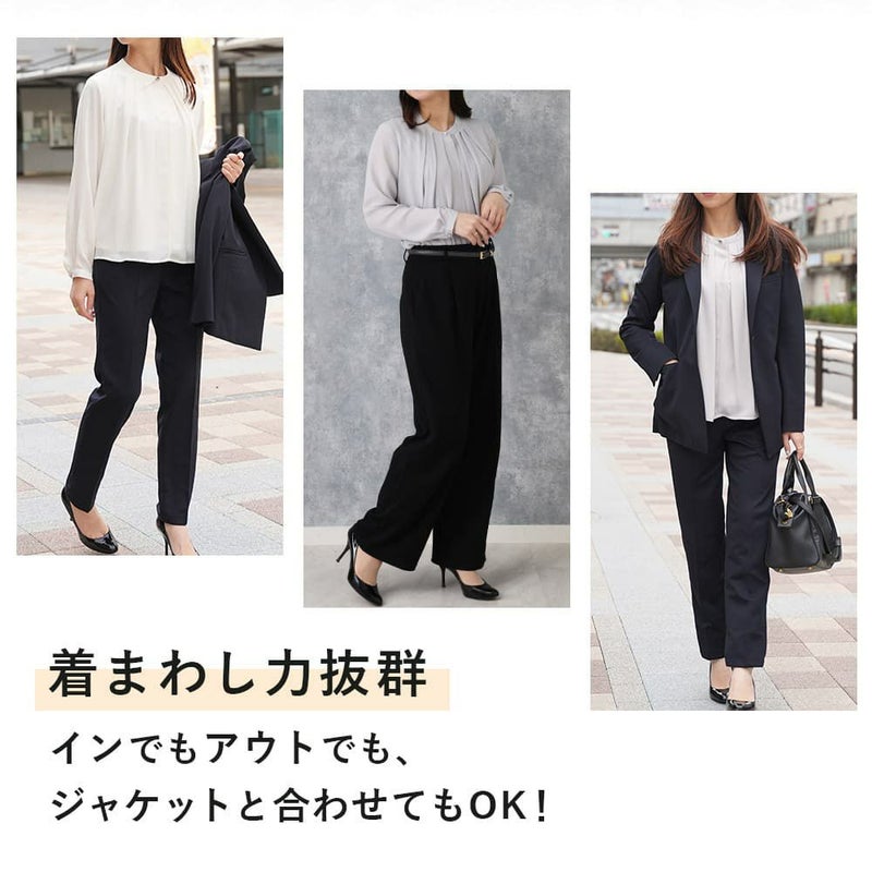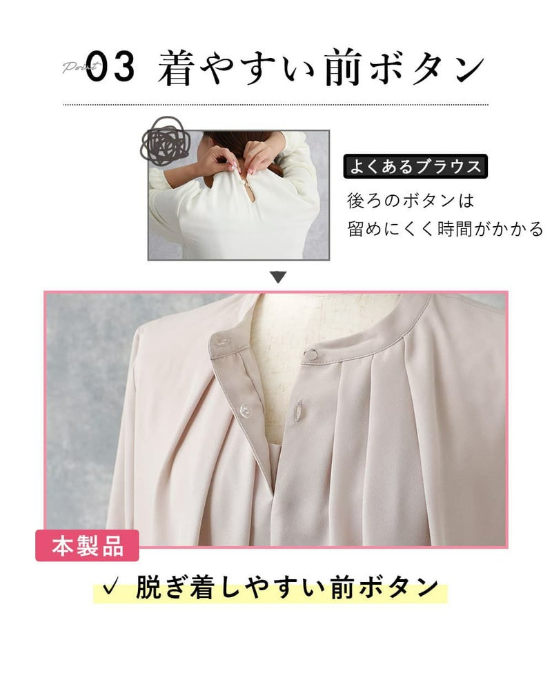 卒入学式や授業参観時のブラウスとしてもおすすめ。インでもアウトでも問題ない丈感と胸元の安心感がポイントです!ジャケットとの相性も抜群。