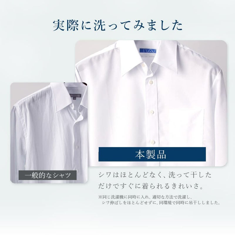 特殊な加工を施すことにより、形態安定性を表すW&W性はノーアイロン基準の4.0級以上をクリア。約90%のシワをカットしてくれます。※公的検査機関において、10回の洗濯後、吊り干し乾燥にて実施