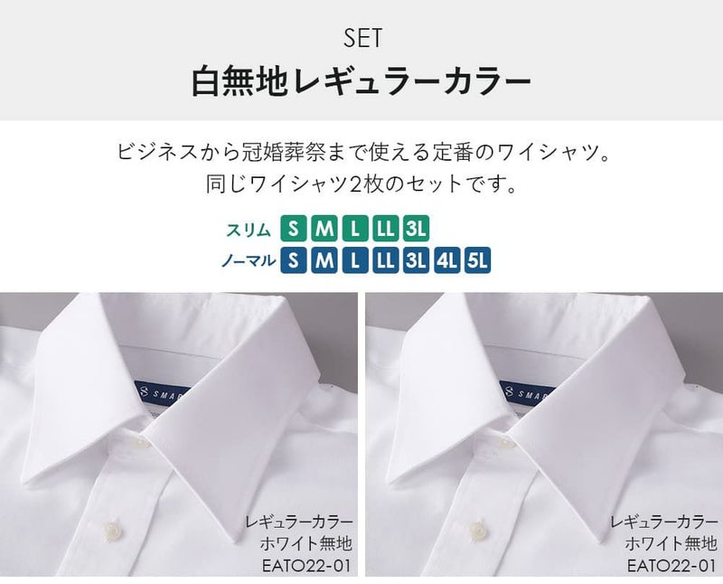 白無地 レギュラーカラー&レギュラーカラー