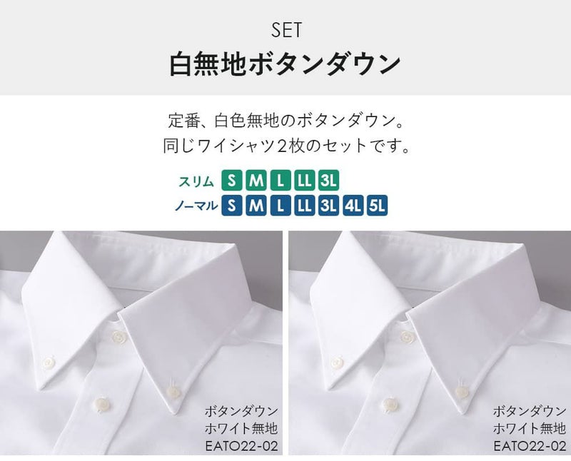 EATO22-02(ホワイト 無地 ボタンダウン)