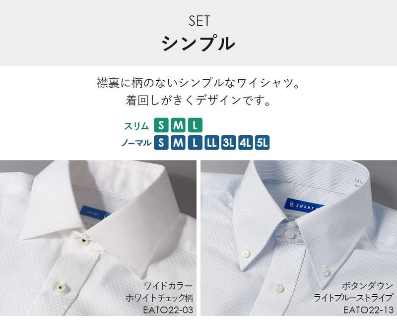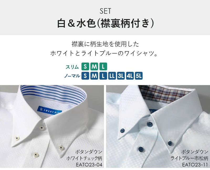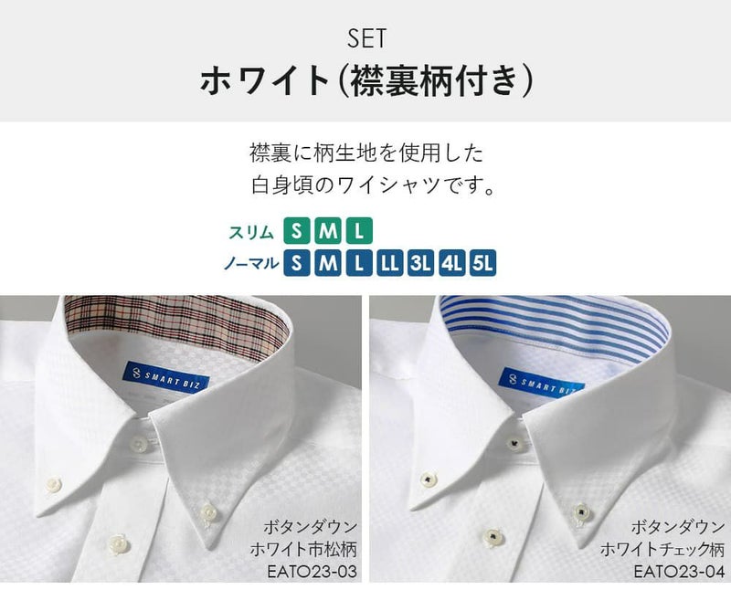 白無地レギュラーカラー&ホワイトチェックワイドカラー