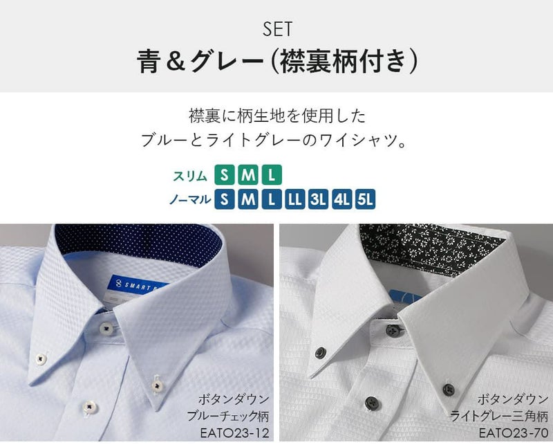 ブルーチェック柄ボタンダウンドット&ライトグレー三角柄ボタンダウンボタニカル