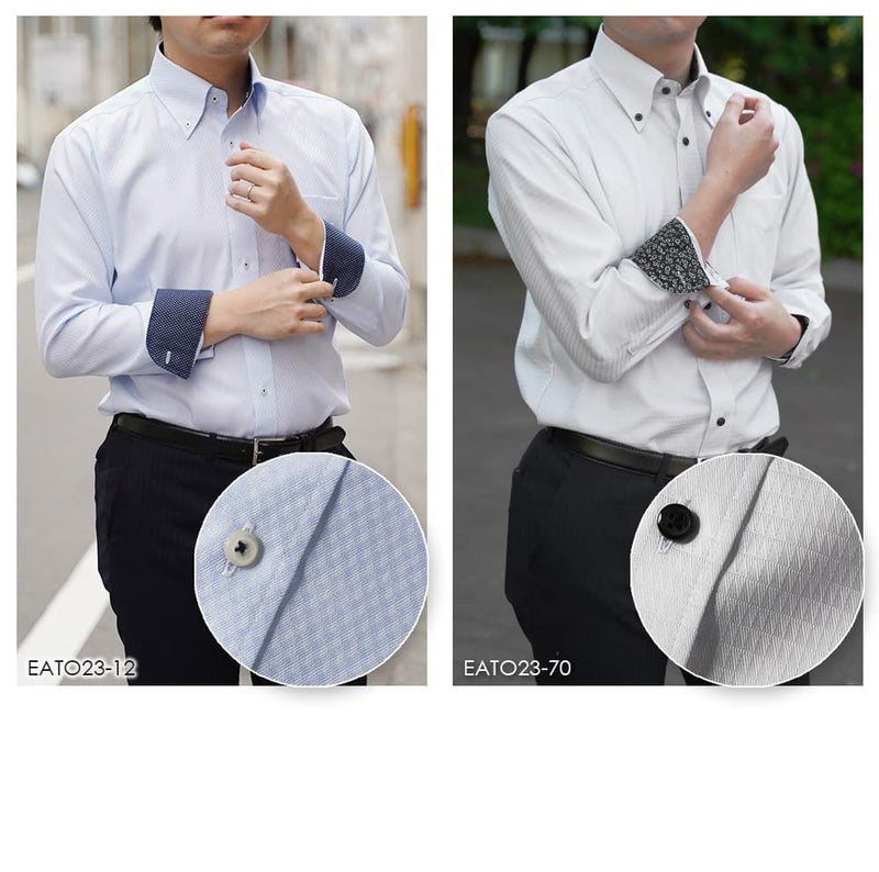 EATO23-02(ホワイト ドビー織 三角柄 ボタンダウン ボタニカル)