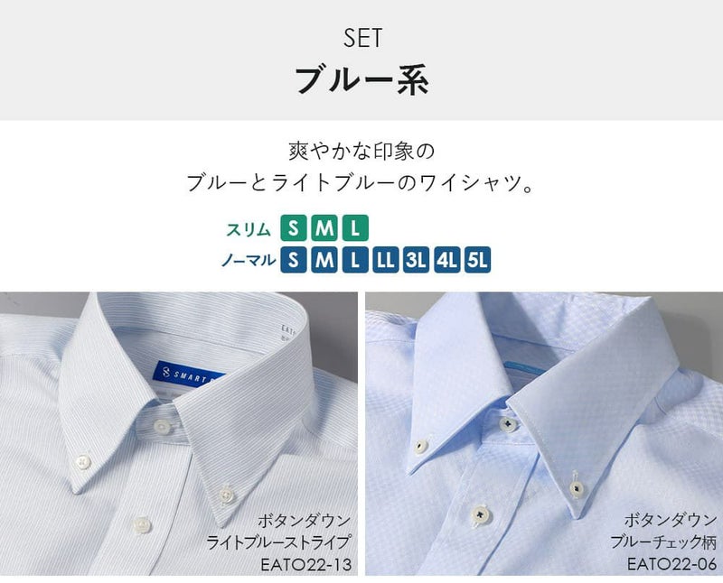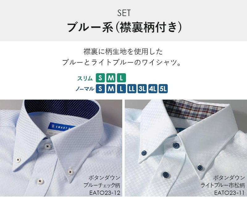 ホワイトチェック柄ワイドカラー&ライトブルーストライプボタンダウン