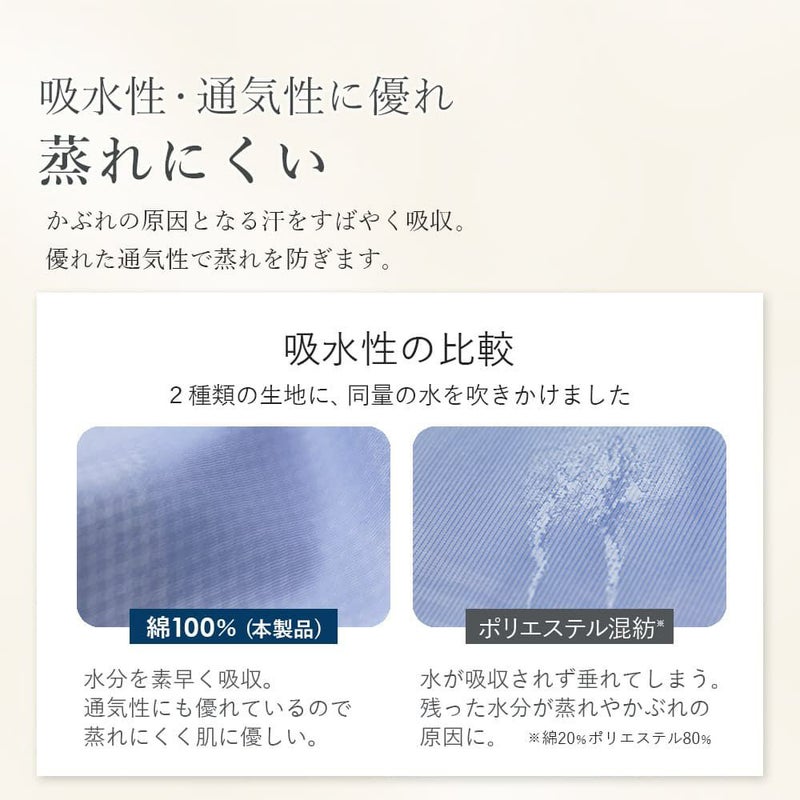 それでも肌に優しい綿100%が良い。そんな思いから、綿100%なのにノーアイロンを実現しました。