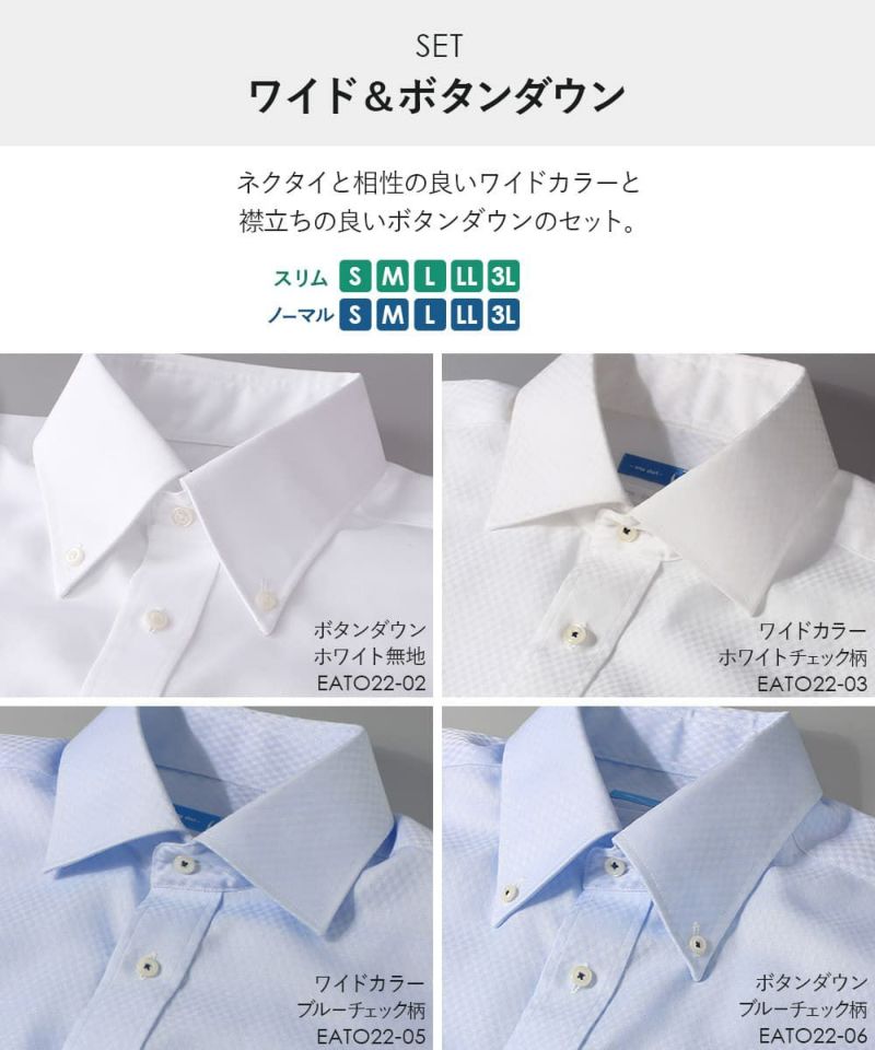 EATO22-03(ホワイト ドビー織チェック ワイドカラー)