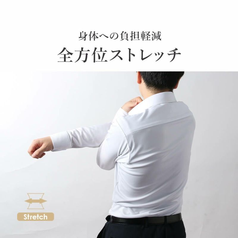 肌に寄り添う柔らかな肌触りでニット編み。完全ノーアイロン、全方位ストレッチ、速乾性ありとワイシャツに求めるものをぎゅっと詰め込みました