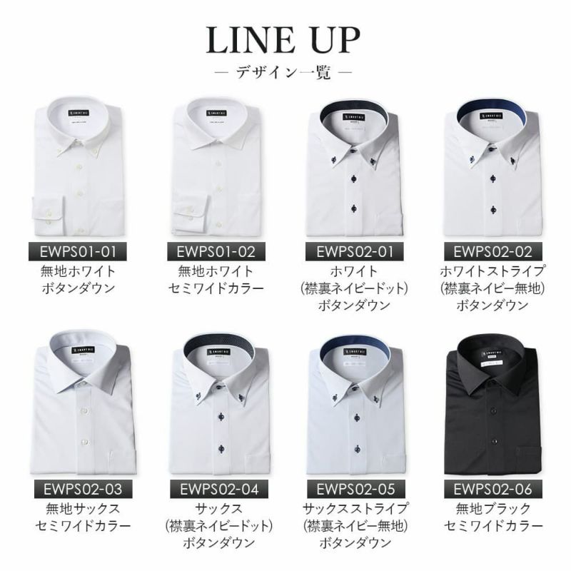 EWPS02-01(ホワイト 無地 ボタンダウン ネイビードット)