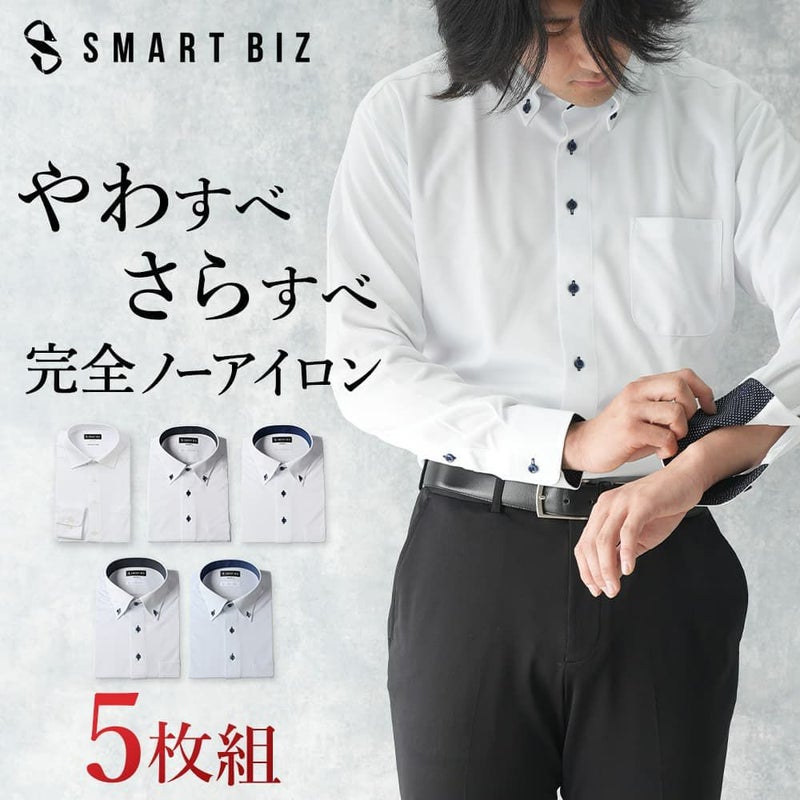 ワイシャツなのに柔らかくてサラサラ! 【プレミアムニットシャツ】スタイリストのおすすめ6種類 5サイズ から選べる5枚セット!