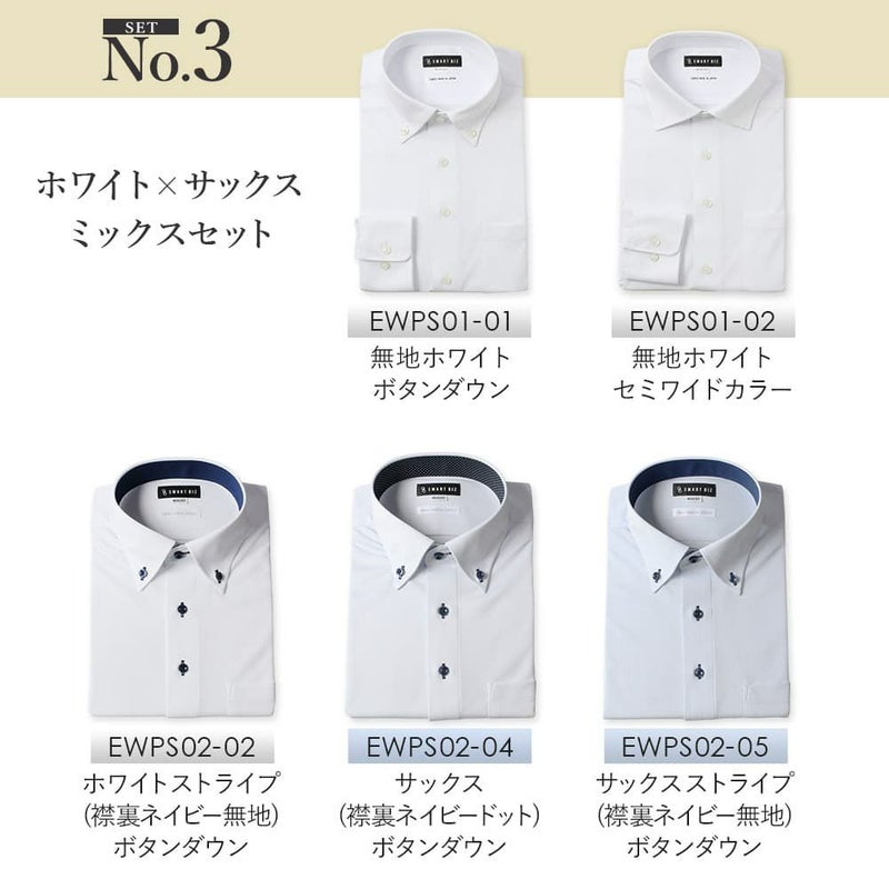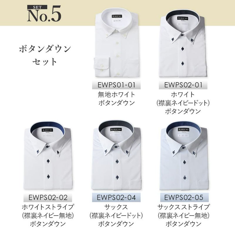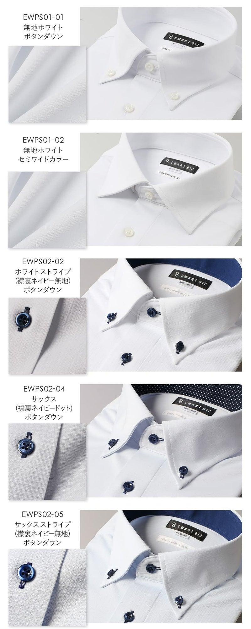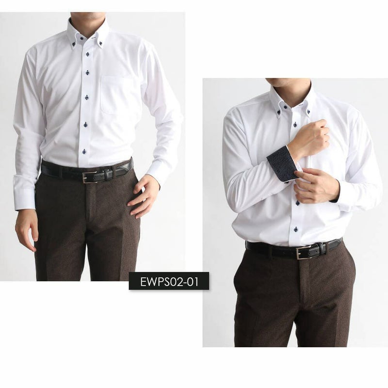 EWPS02-01(ホワイト 無地 ボタンダウン ネイビードット)