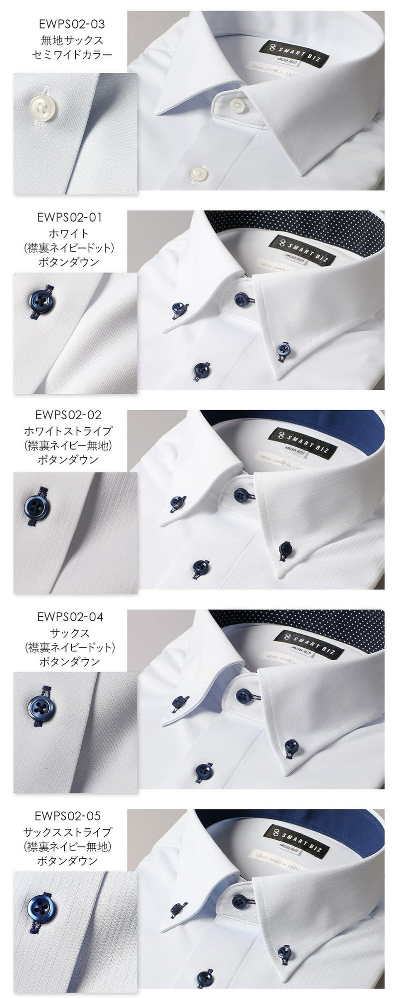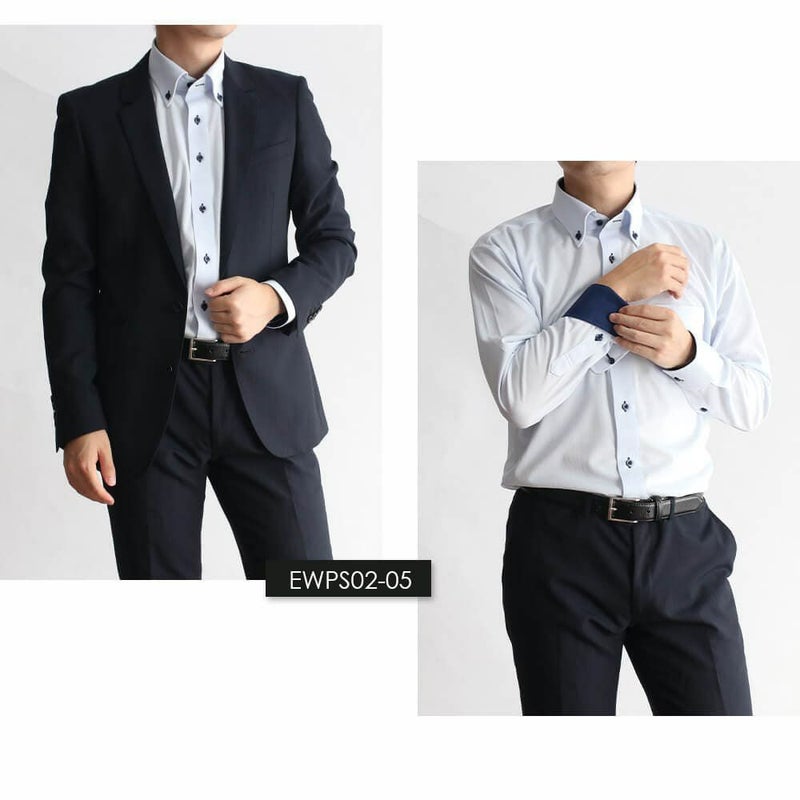 EWPS02-05(サックス ドビー織ストライプ ボタンダウン ネイビー無地)