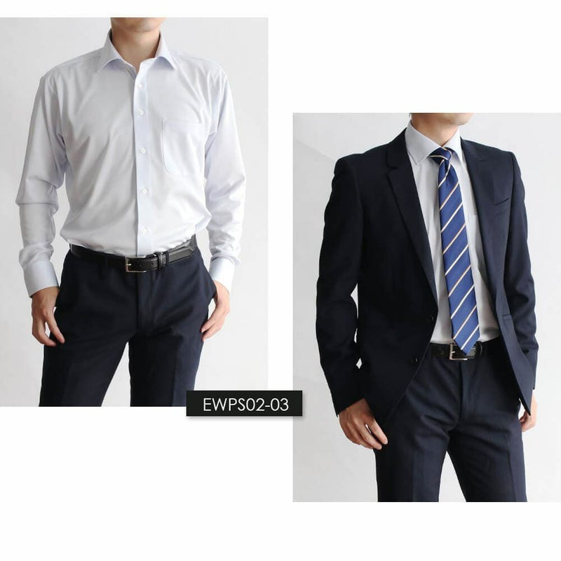 EWPS02-02(ホワイト ドビー織ストライプ ボタンダウン ネイビー無地)