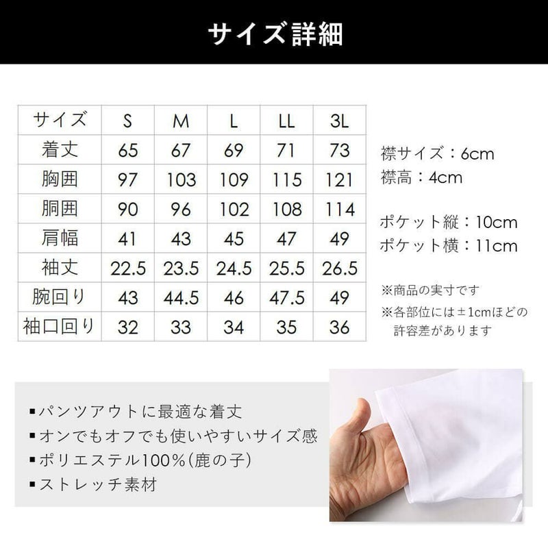 しっかりとした襟(台襟付きできちんとした印象に)もたつかないサイズ感(ジャケットを着てもごわつきにくい腕周りやお腹周り)パンツアウトにちょうどいい丈(やや短めなので脚長効果も)