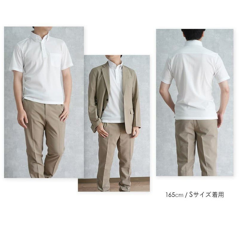 一般的なポロシャツは柔らかな襟が特徴ですが、あえて襟に芯地をいれることでしっかりとした襟になり、1枚だけでももちろん、ジャケットと合わせることでビジネスシーンでも着用が可能です。