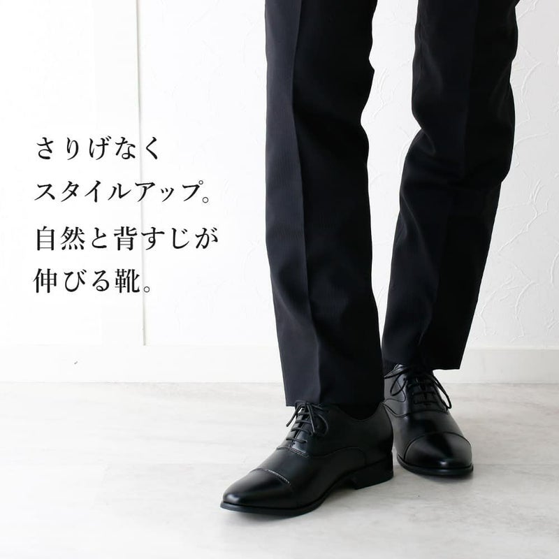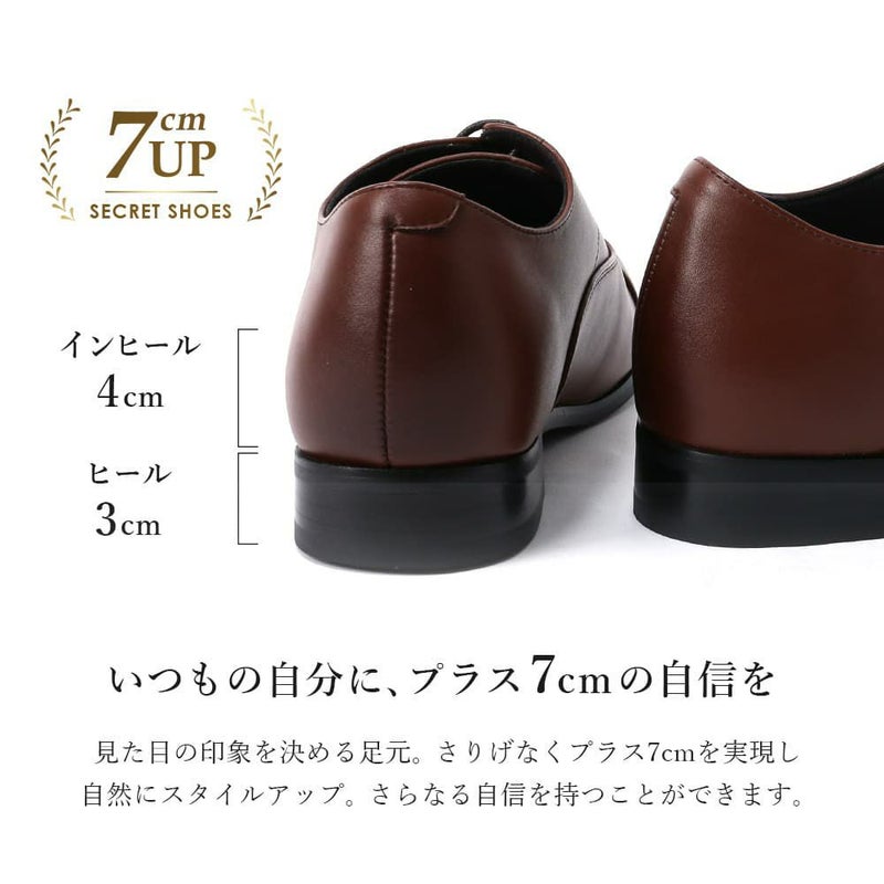 見た目の印象を決める足元。身長が高くなるだけではなく自然と背筋が伸びることで自身を持つこともできます。インソールとアウトソールで合計7cmUPです。