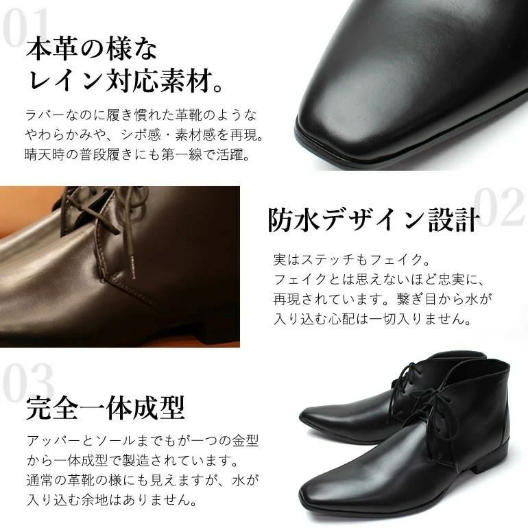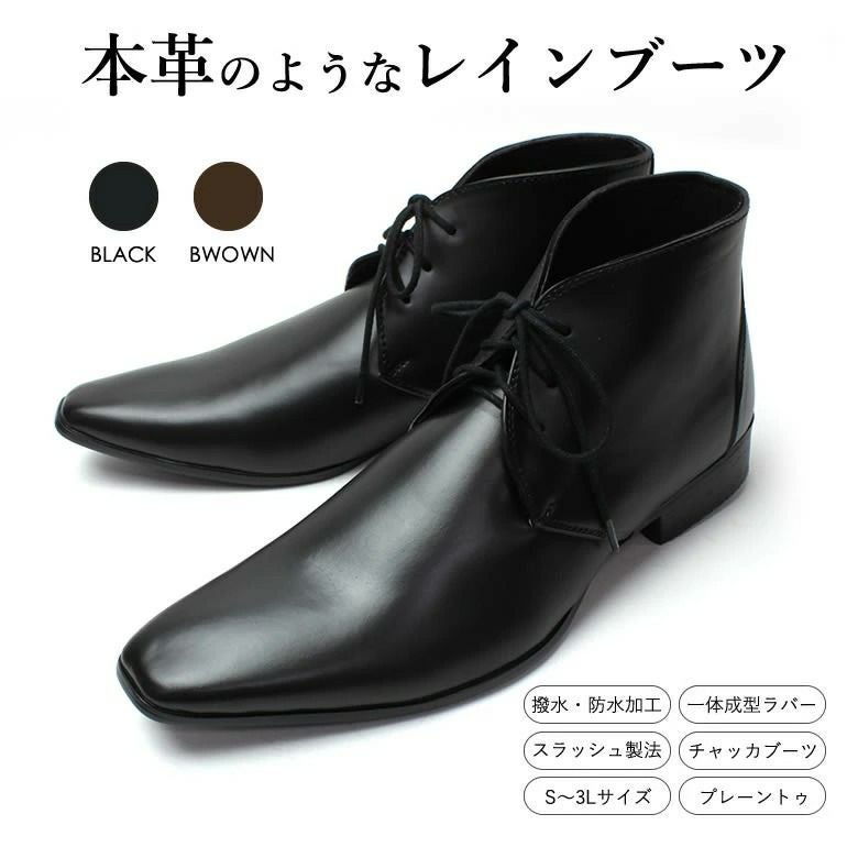 まるで革靴のようなレインシューズ レインシューズ 外羽根レースアップ プレーントゥ 2色から選べる