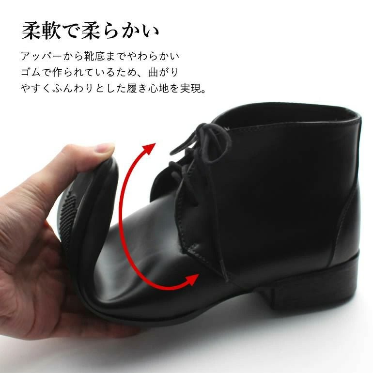 ラバーなのに履き慣れた革靴のようなやわらかみや、シボ感・素材感を再現。晴天時の普段履きにも第一線で活躍