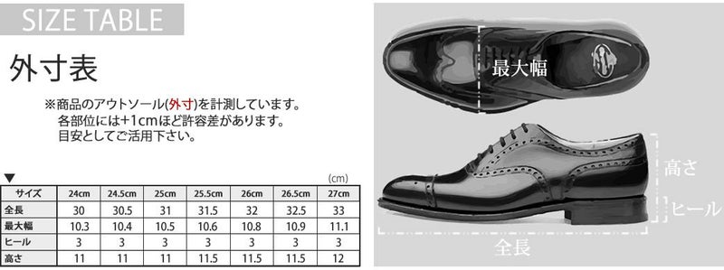 足幅:3E相当/7cmアップ設計/24.0cm/24.5cm/25.0cm/25.5cm/26.0cm/26.5cm/27.0cm