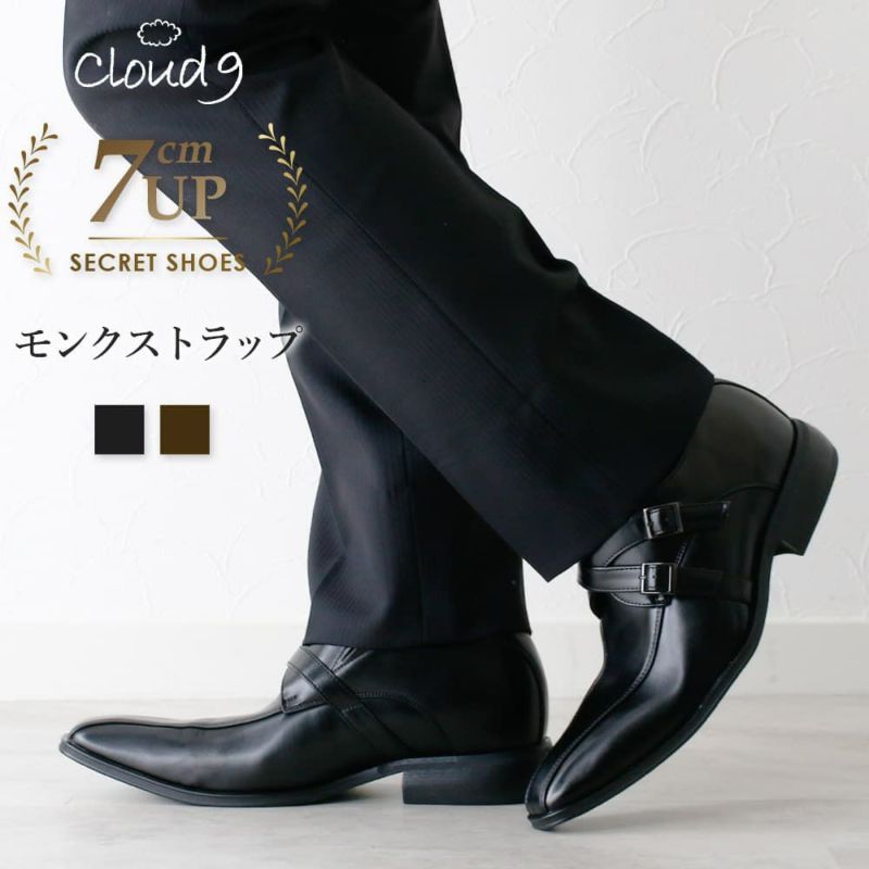 シークレットシューズで7cmUP 【Cloud9】モンクストラップ 2色 7サイズから選べる!
