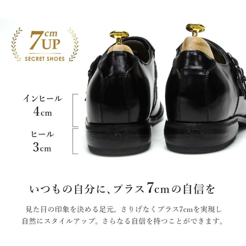 見た目の印象を決める足元。身長が高くなるだけではなく自然と背筋が伸びることで自身を持つこともできます。インソールとアウトソールで合計7cmUPです。