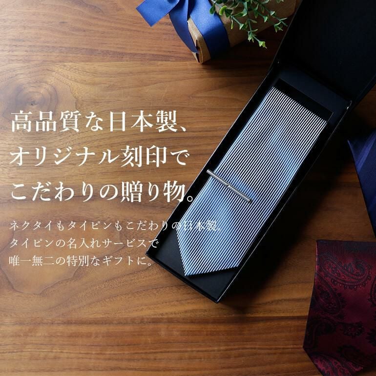 高品質な日本製のネクタイピンに自社で刻印。オリジナルでも即日出荷が可能です。刻印が不要な場合は、刻印を希望しないとご記載ください。