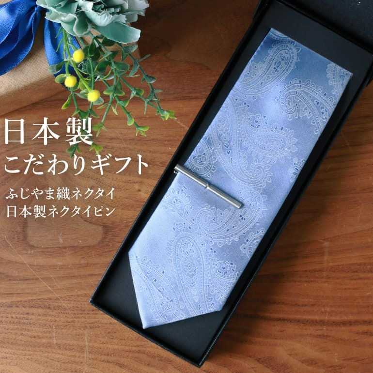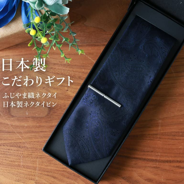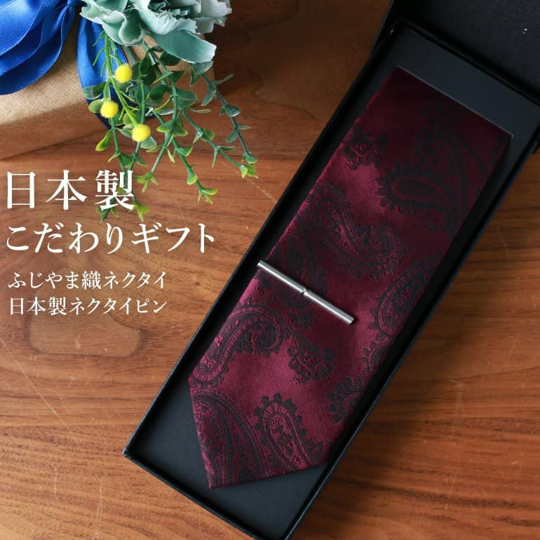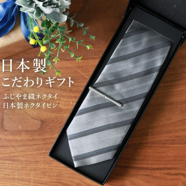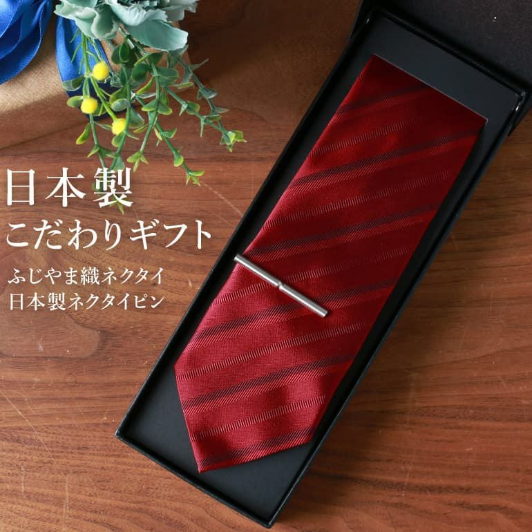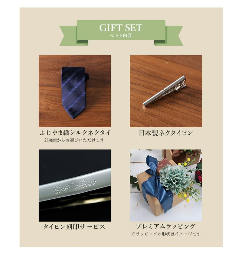 日本製シルクネクタイ×日本製タイピン 【ふじやま織ネクタイ】 ギフトに最適 刻印付き ラッピング付き 21種類から自由に選べる!