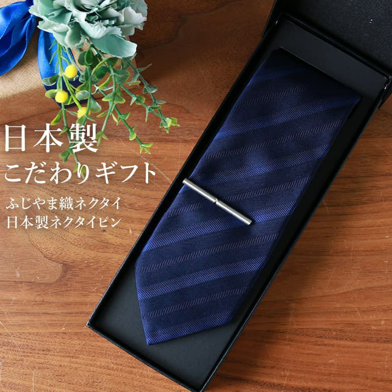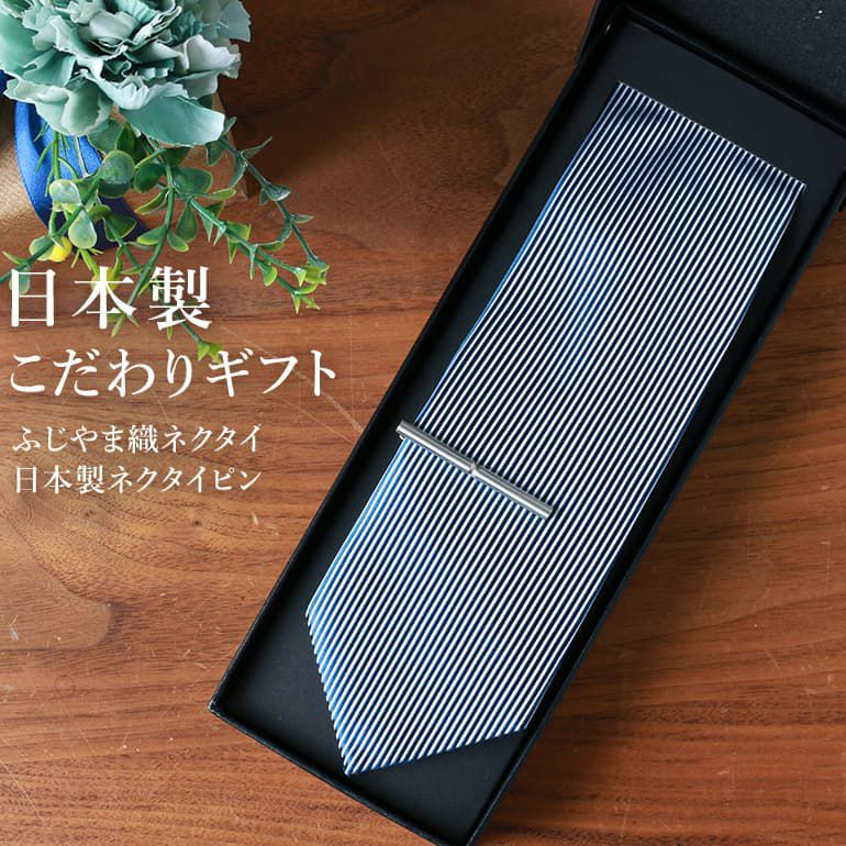 日本製シルクネクタイ×日本製タイピン 【ふじやま織ネクタイ】 ギフトに最適 刻印付き ラッピング付き 21種類から自由に選べる!