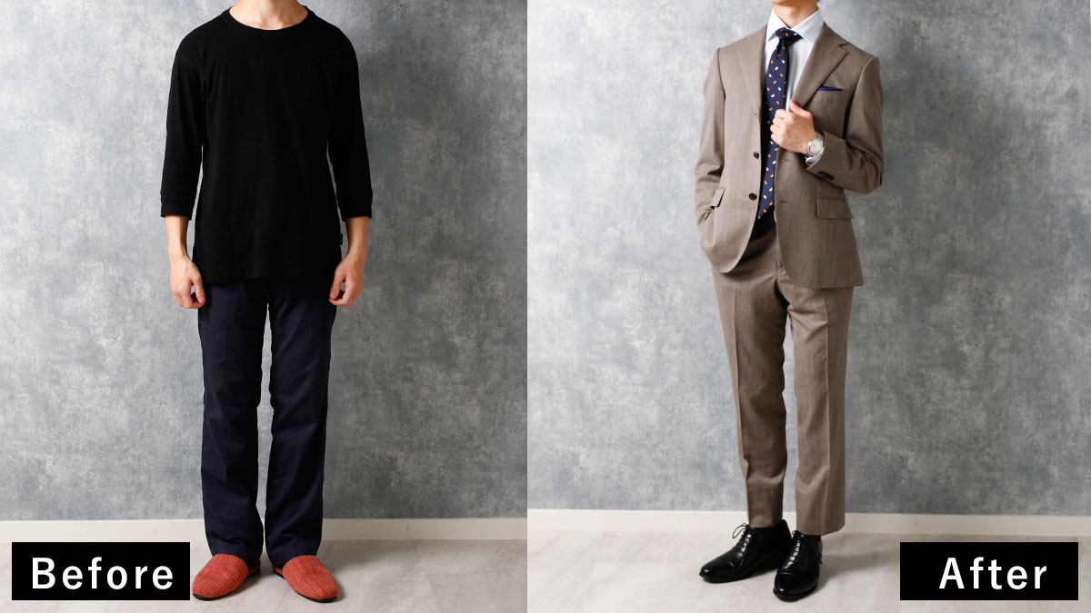 ブラウンのスーツで、堅苦しさを取っ払う(綺麗めセットアップでも可)