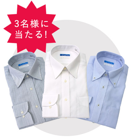 - 懸賞品「超形態安定ワイシャツ3着セット」の当選者3名は、上記の通りに応募した新規会員登録者の中から抽選で決定致します。