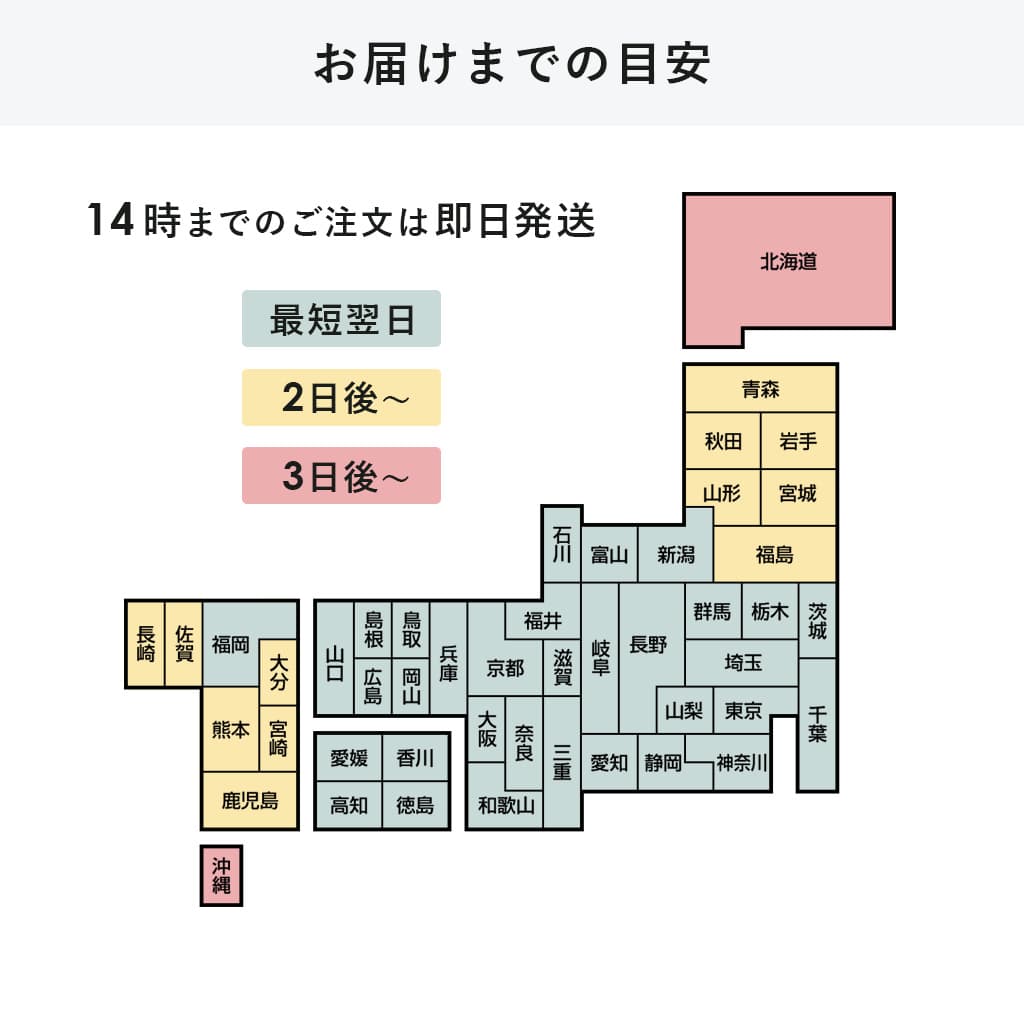 臨時休業時を除き、当店は即日出荷しております。キャンセル、ご注文変更はお早めにご連絡頂ますようお願いいたします。