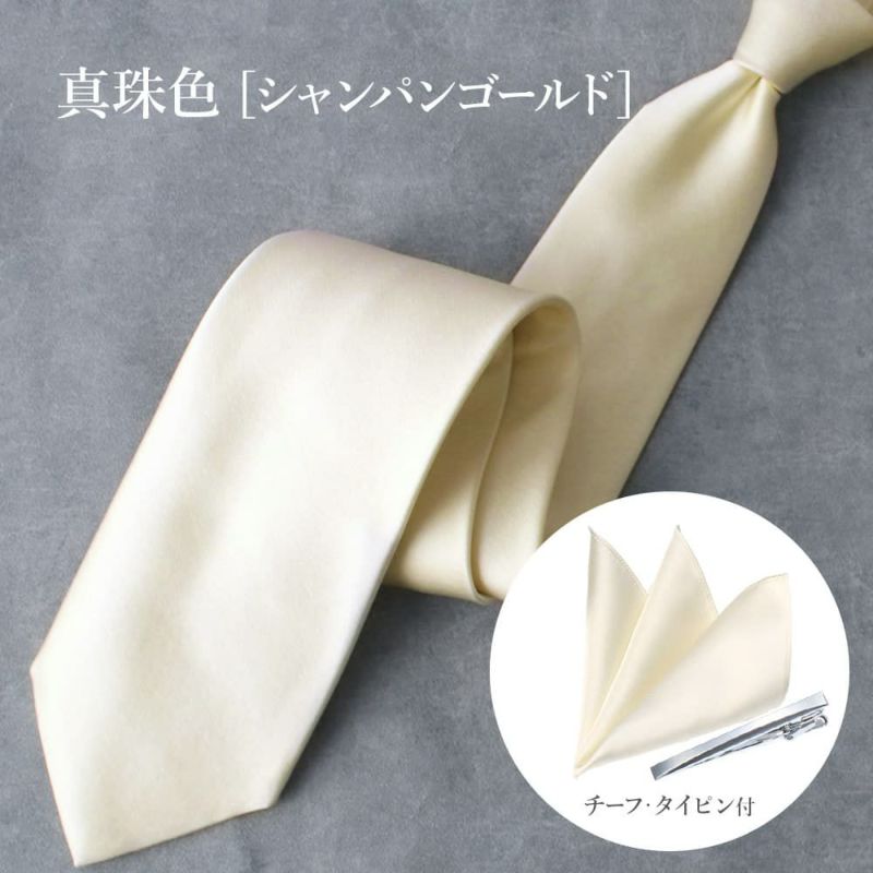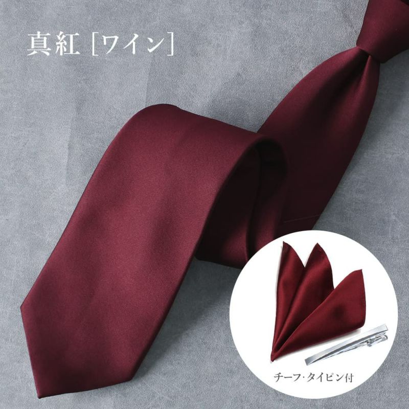 [無地] 日本製のシルク100%ネクタイ+チーフ+タイピン 【ふじやま織ネクタイ・チーフ・タイピンセット】 無地 クリアラッピング付きでギフトにもぴったり 16色から自由に選べる!