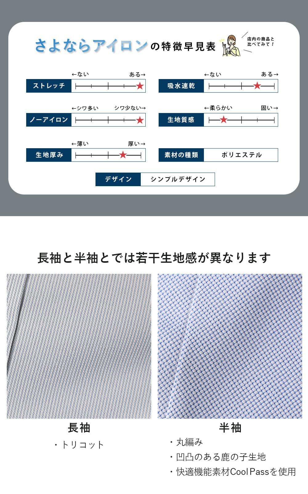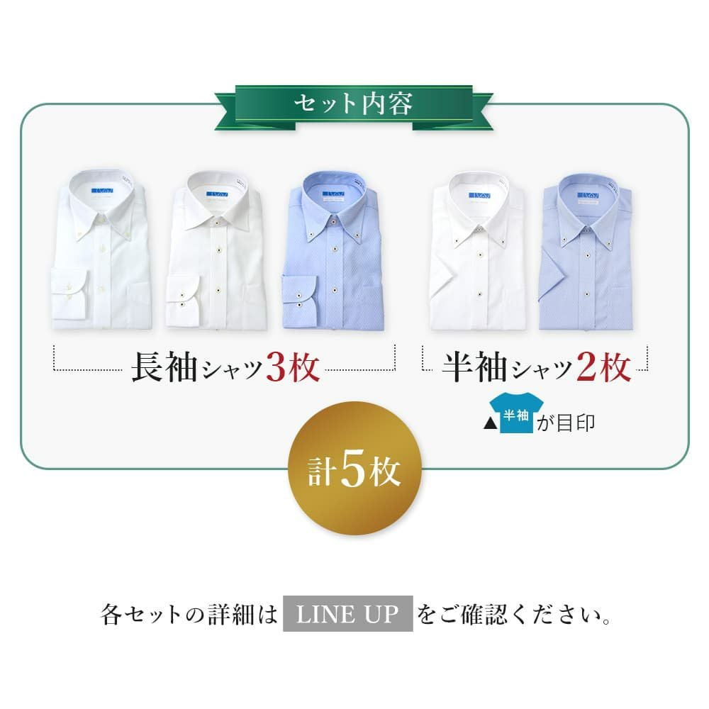 もうアイロンしなくていい! 【さよならアイロン】長袖3枚+半袖2枚 7サイズから選べる5枚セット!