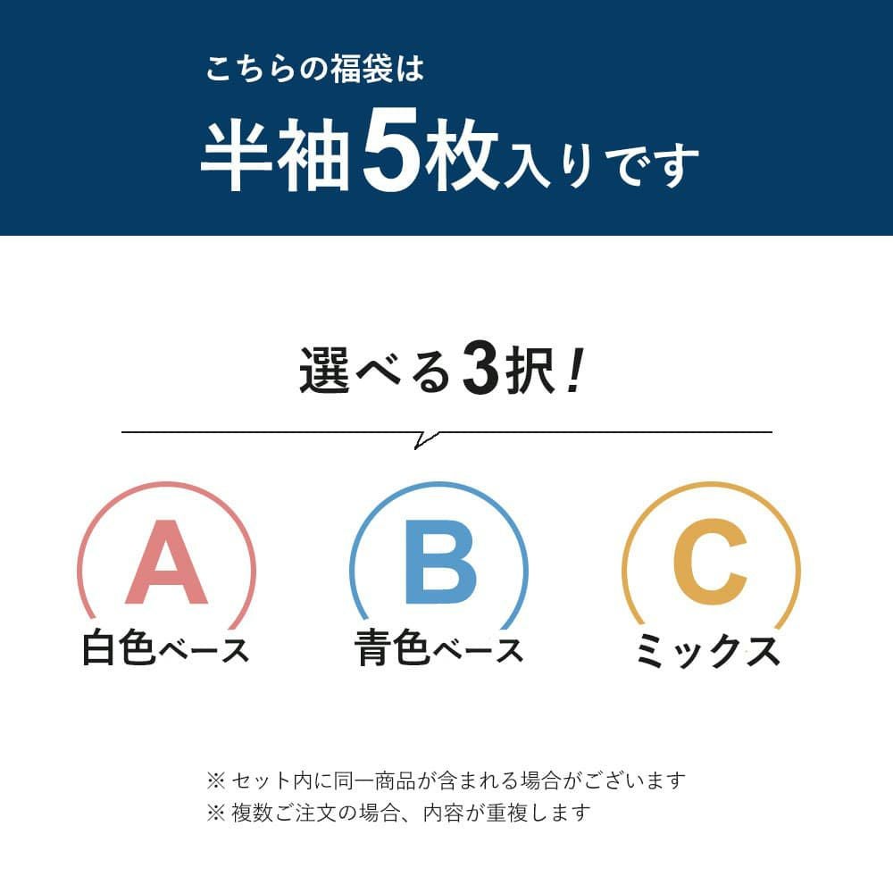 シワになりやすい綿なのにアイロン不要! 【綿100%なのにノーアイロン】売り尽くし福袋!5枚入り 半袖