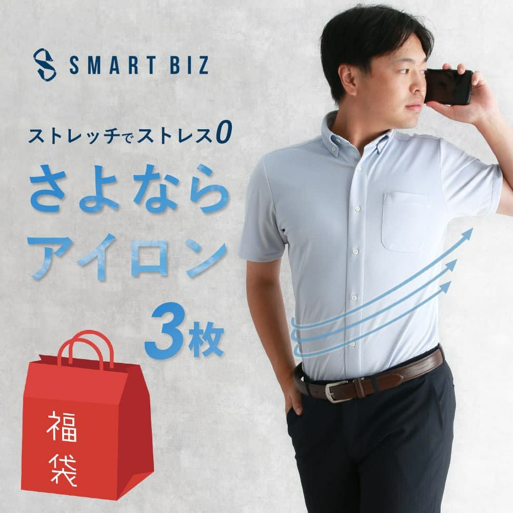 もうアイロンしなくていい! 【さよならアイロン】売り尽くし福袋!3枚入り 半袖