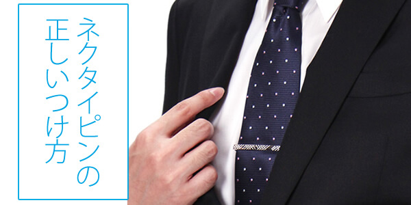 スーツのジャケットを着用している場合、タイピンはジャケットの第一ボタンの少し上につけましょう。さりげなく見える程度がちょうどいいとされています。