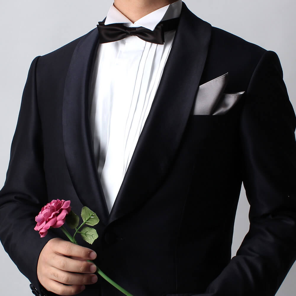 結婚式での男性衣装としてのタキシードや燕尾服、あるいはお葬式で着用される喪服などがそれに当たります。