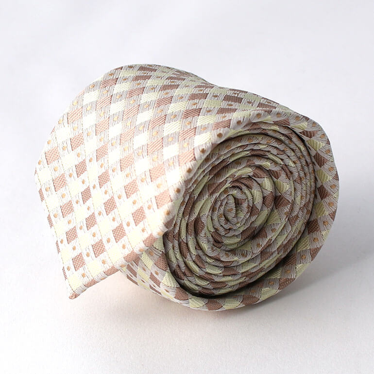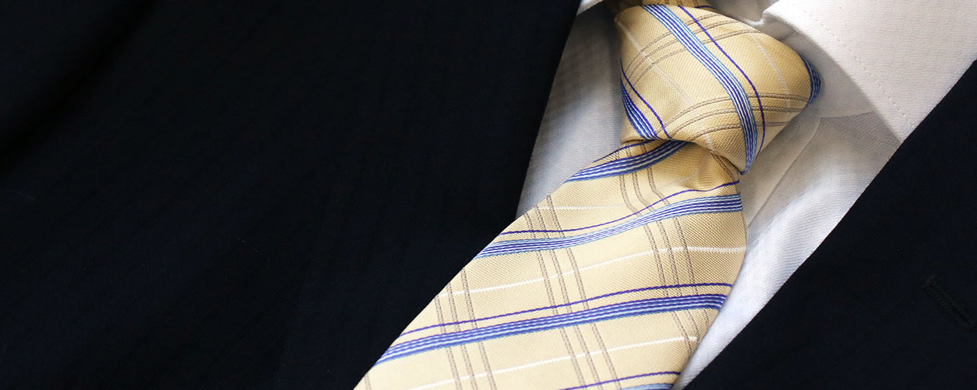 ネクタイ柄は、ストライプ(レジメンタル)や質感のある無地ネクタイがおすすめ。