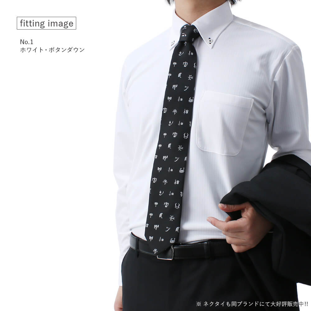 ネクタイを締めればベーシックな印象にボタンを外せば遊び心あふれる印象にOn / Offを1枚で楽しめるおしゃれなデザインワイシャツです。